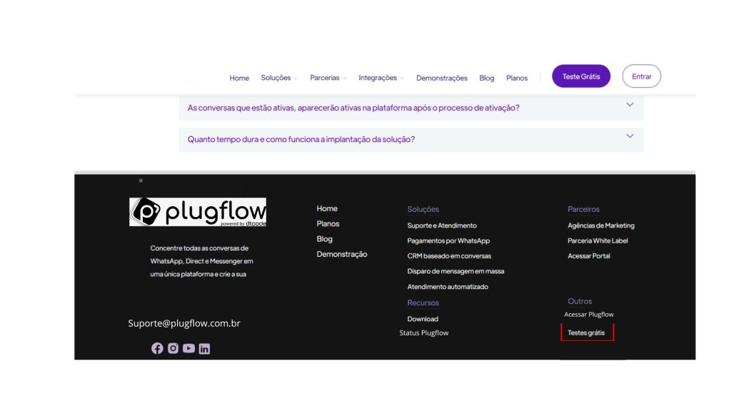 O teste gratuito da Plugflow tem duração de 14 dias corridos a partir da ativação. Durante esse período, você poderá explorar o sistema com liberdade e contar com o suporte da nossa equipe.